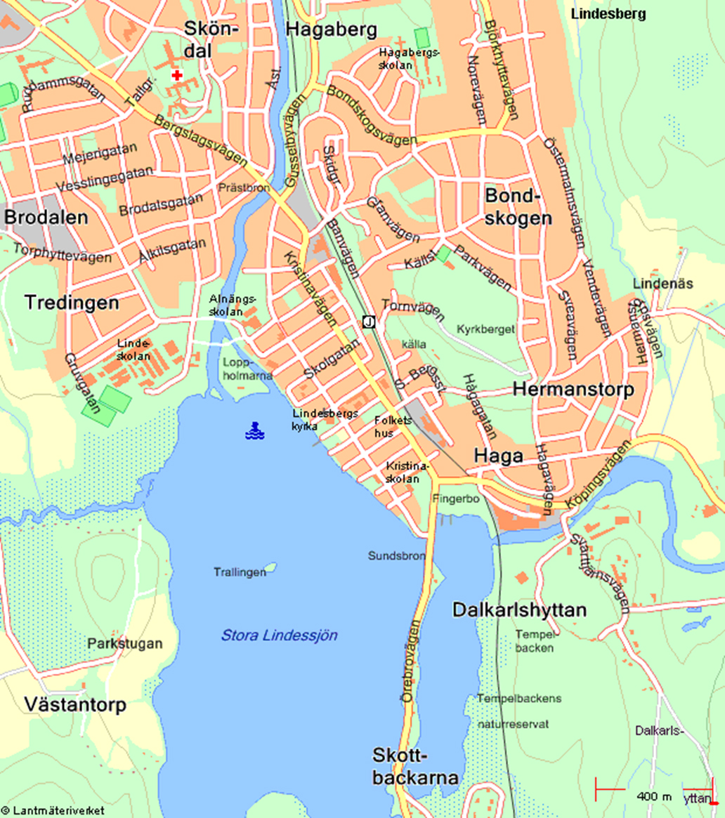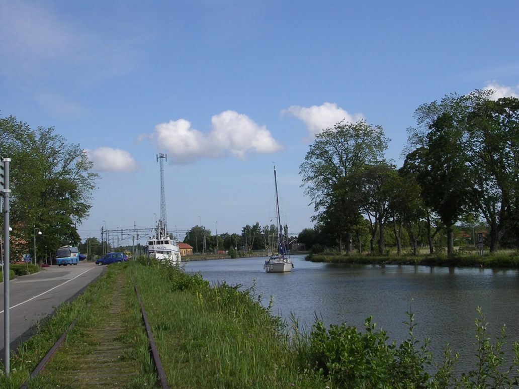 Vy från Töreboda, lägg märke till järnvägsspåret längs kanalen. Foto Hans Follin 2006