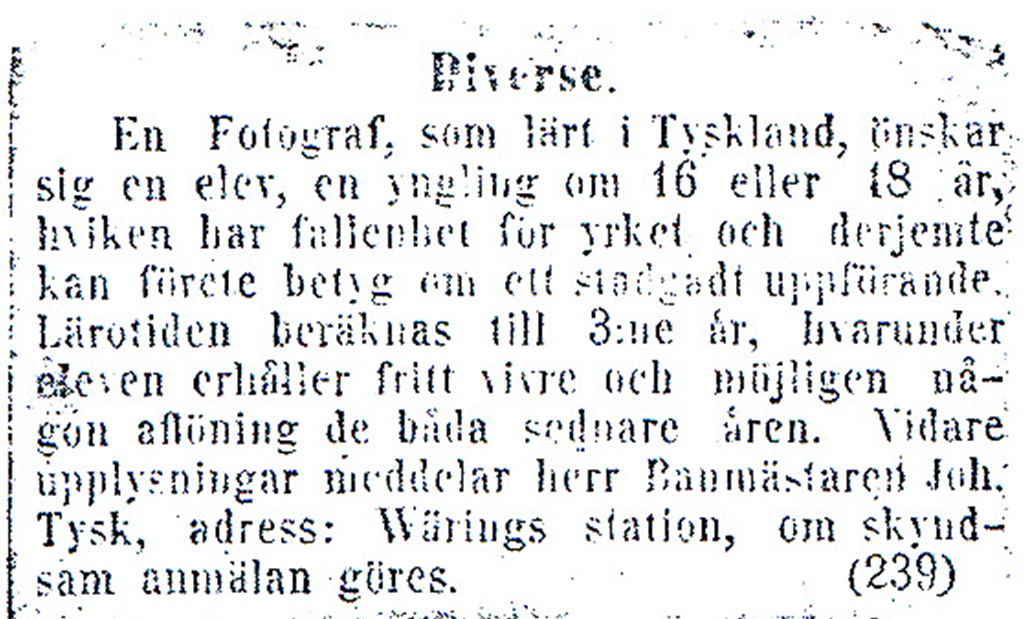 Carl reser till herr Kleffel i Goldberg i Tyskland för att utbilda sig till fotograf