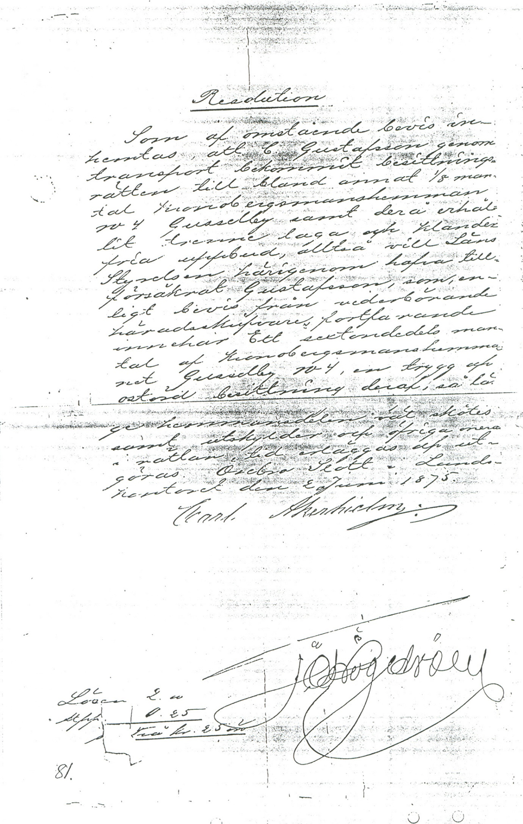 Carl berättade att det fanns en mängd vargar, som varit synliga under en hel veckas tid nästan ända in på knuten till Gusselborg. Utomhustemperaturen var mellan minus 42 och 43 grader, så det var en kall vinter år 1875. Carl och hela familjen hade haft ont i bröstet, men de var återställda från detta.