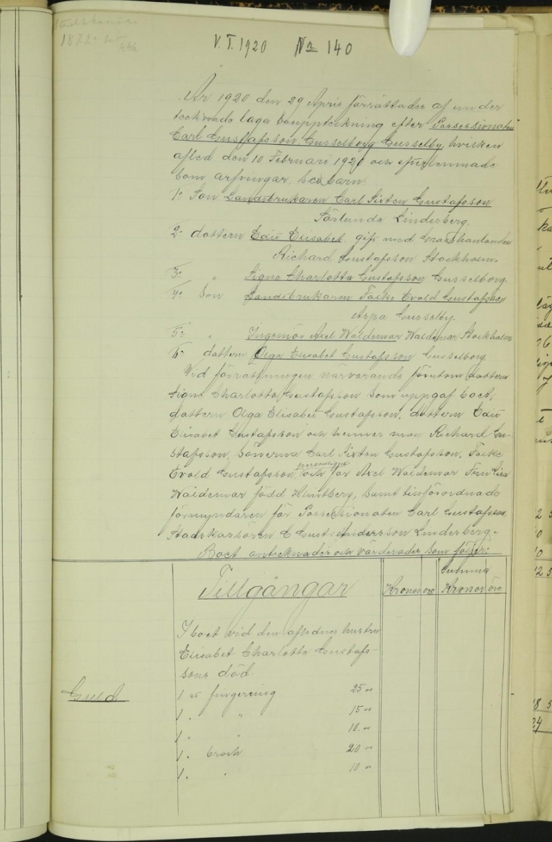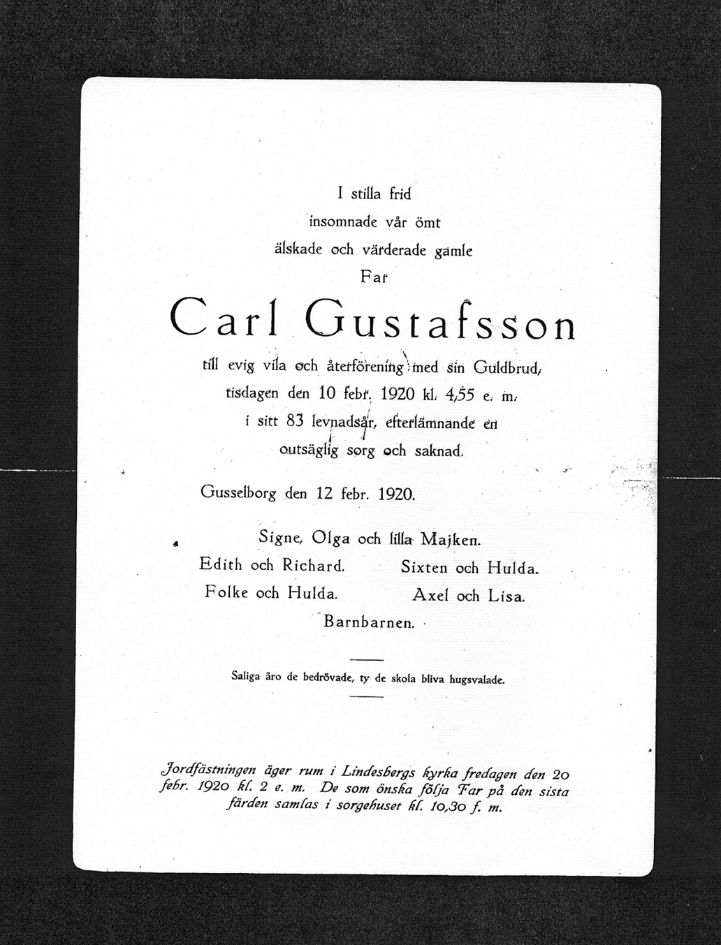 Nedan Carl Gustafsson's bouppteckning