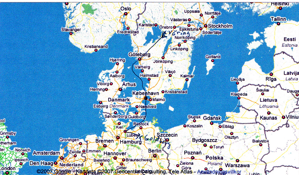 Karta över Carls färdväg