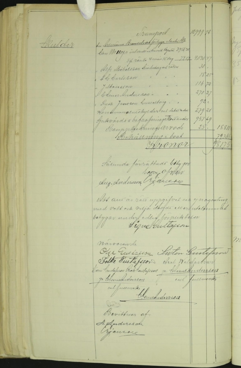 Vidare hade han åtalat snickaren Sven Gustaf Andersson, som i Hovrätten hade blivit dömd att betala 220 kronor, Carl hade velat göra upp med honom i godo för 85 kronor. Han var osäker på om snickaren skulle gå till Kungs med ärendet. Carls egentliga fordran på Andersson var 105 kronor och resten var rättegångskostnader.