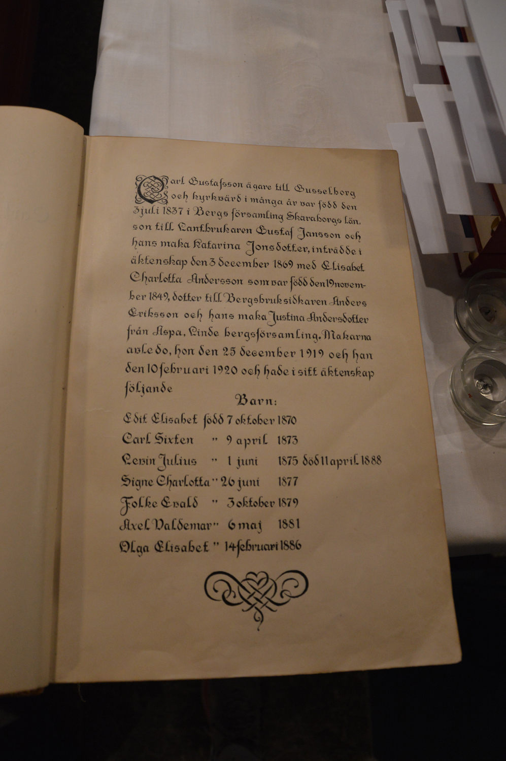 Den 26 juni 1877 utökades barnaskaran för Elisabeth och Carl, då de fick en liten dotter, som döptes till Signe Charlotta. Hon kallades för Signe.